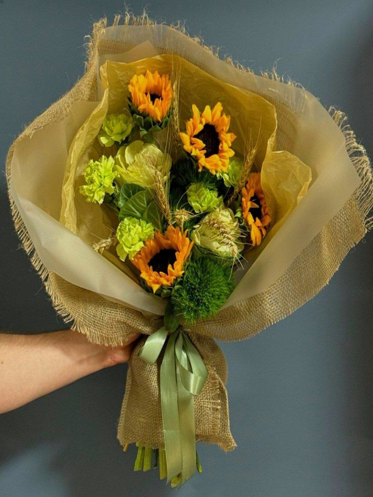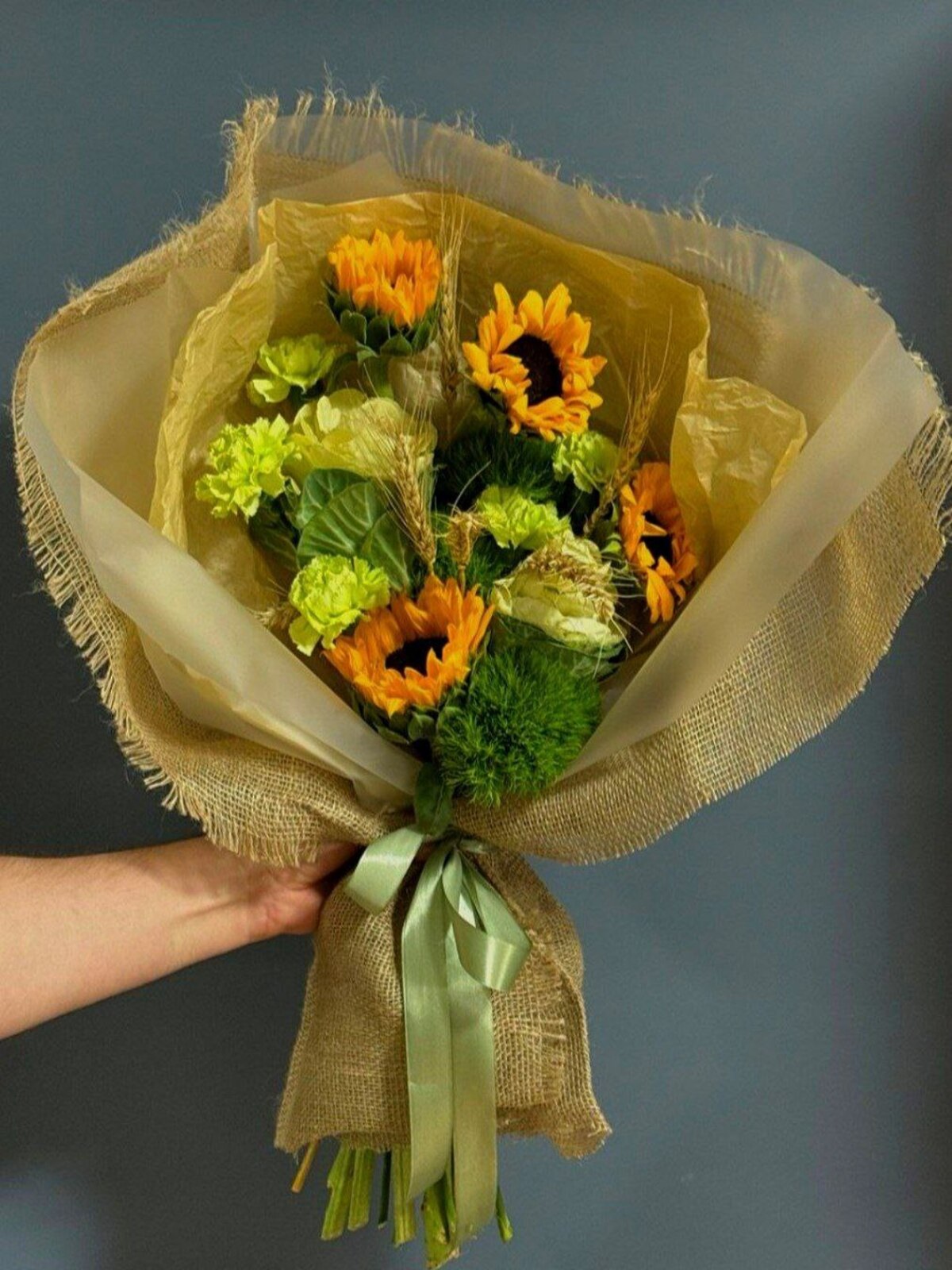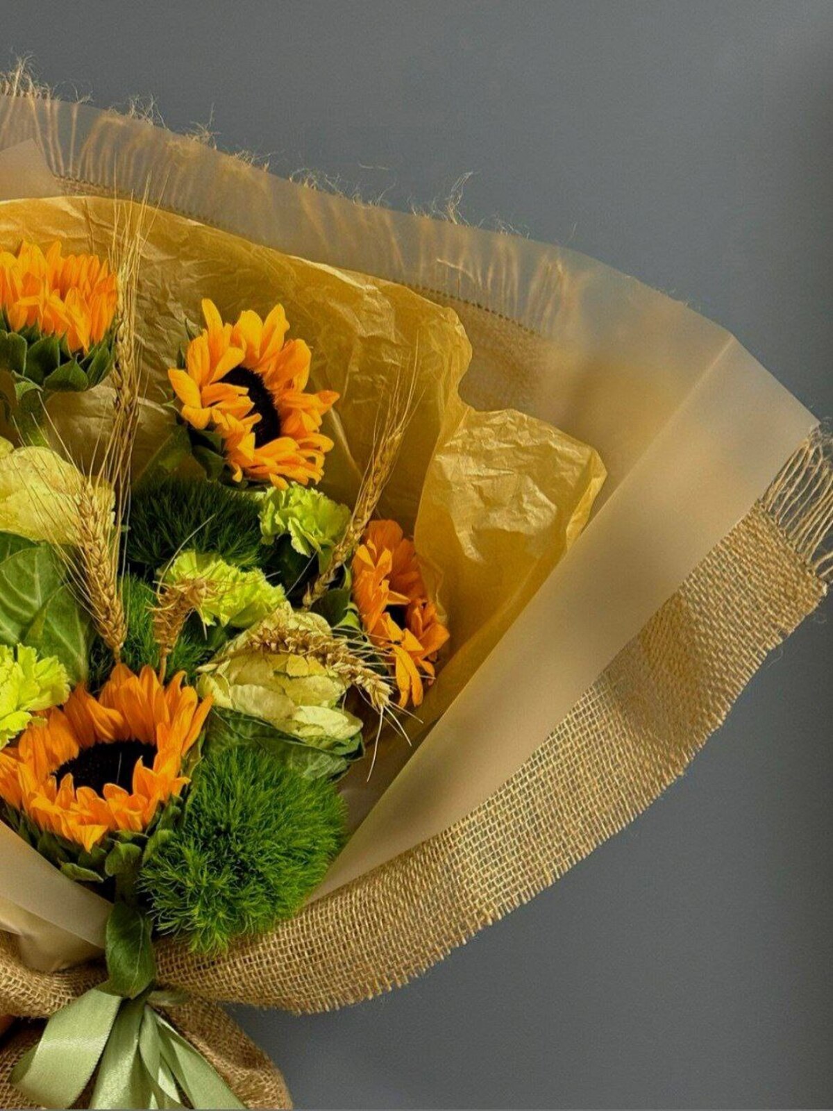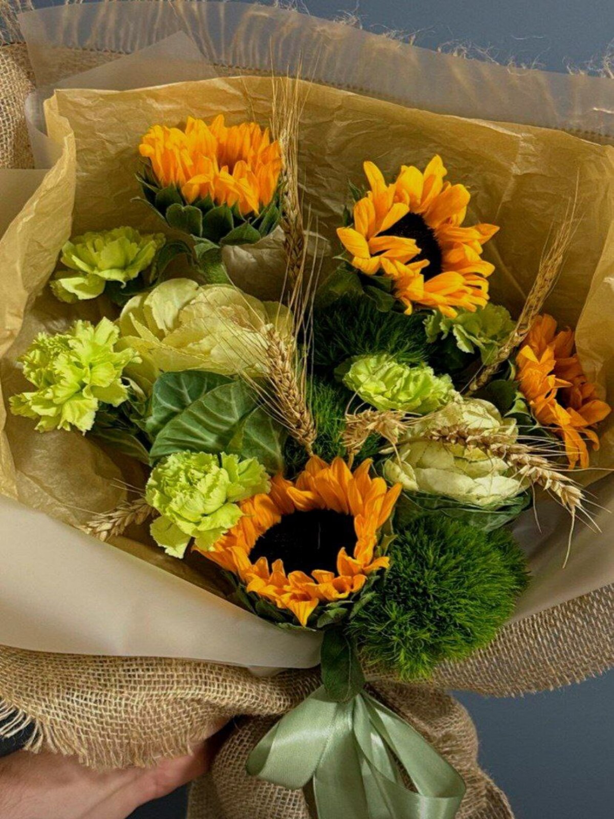Нежные Диантусы, яркие Гелиантусы и экзотические Брассики — идеальное сочетание для тех, кто ценит природную красоту! Этот букет подарит ощущение летних деньков, проведенных в уютной деревне, вдохнет свежесть полевых цветов в любое помещение. Присутствие такого букета создаст атмосферу тепла и уюта, наполнив пространство гармонией природы. Подчеркните свою близость к естественности и заказывайте букет "Сельский"! Уже сегодня ваш дом может наполниться ароматом цветущих полей!
